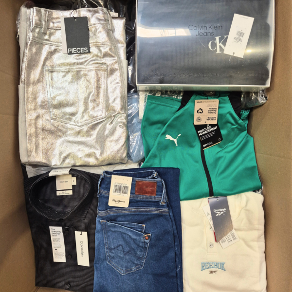 Package of 20 kg of new brand clothing - grade A. Clothes are new, have paper tags and are packed in the original plastic bags. The package includes well-known brands such as Adidas, Calvin Klein, Ellesse, Levi's, NameIt, Nike, Only, Pepe Jeans, Pieces, Puma, Reebok, s.Oliver, Vero Moda, Vila
